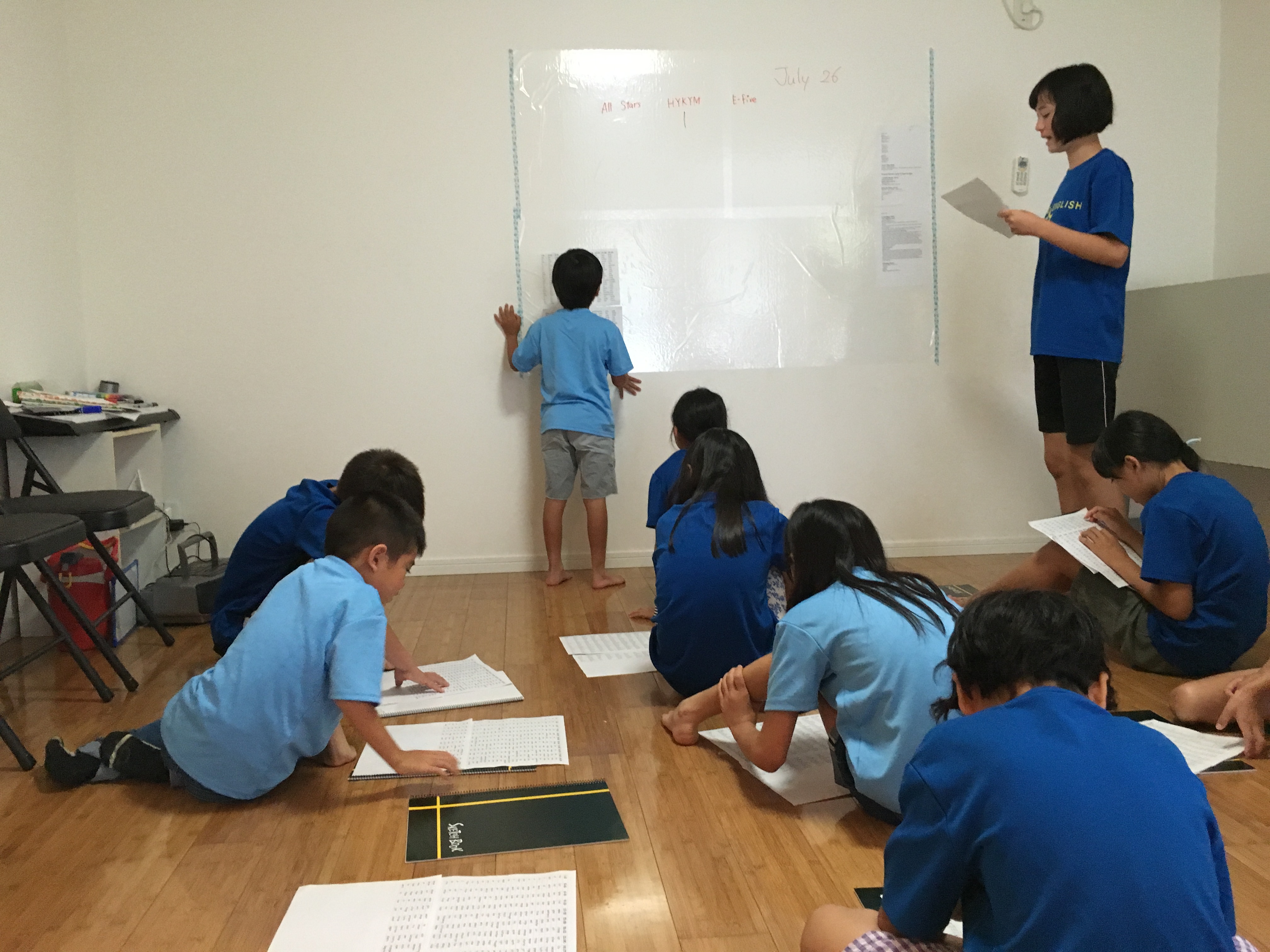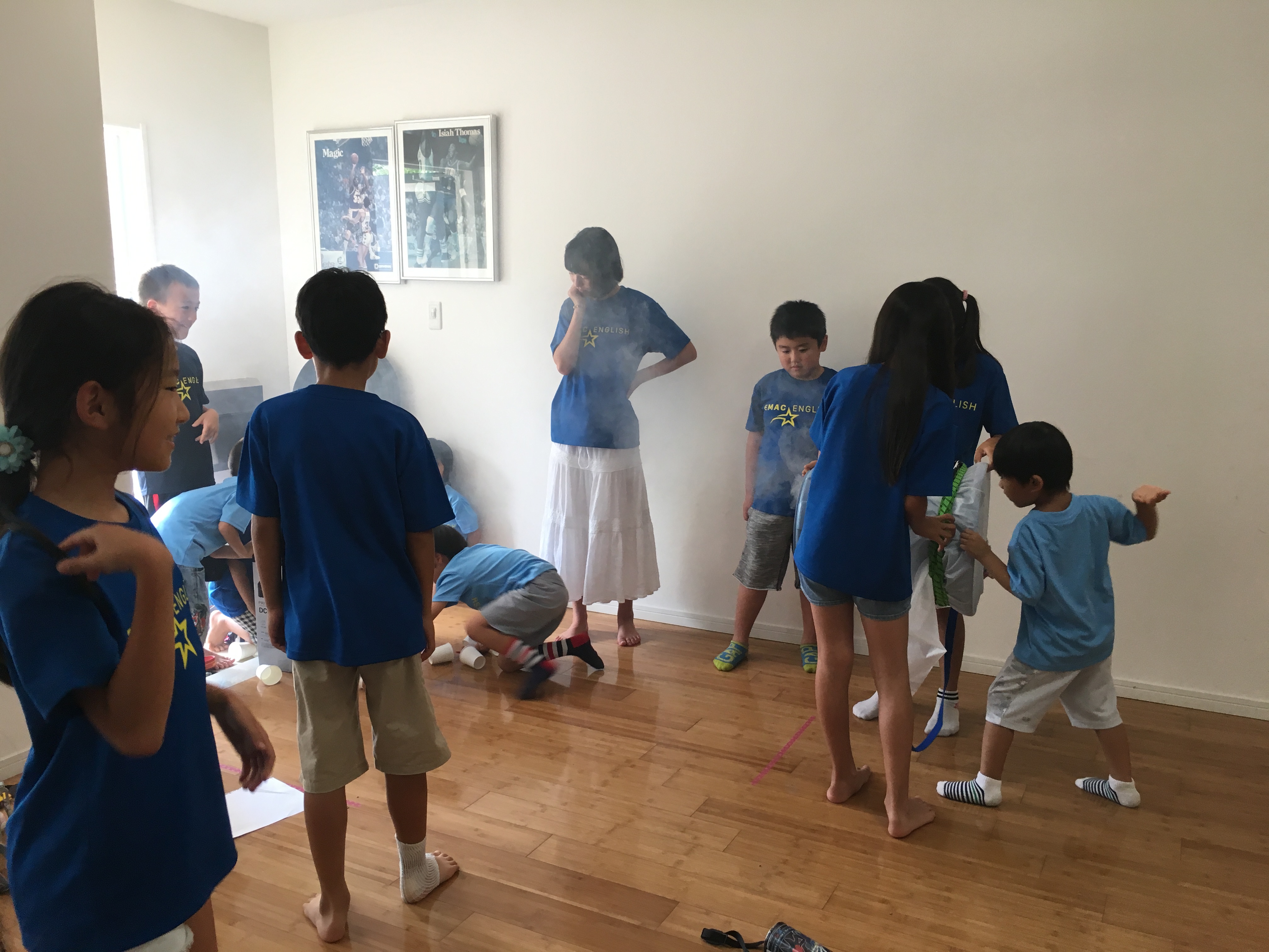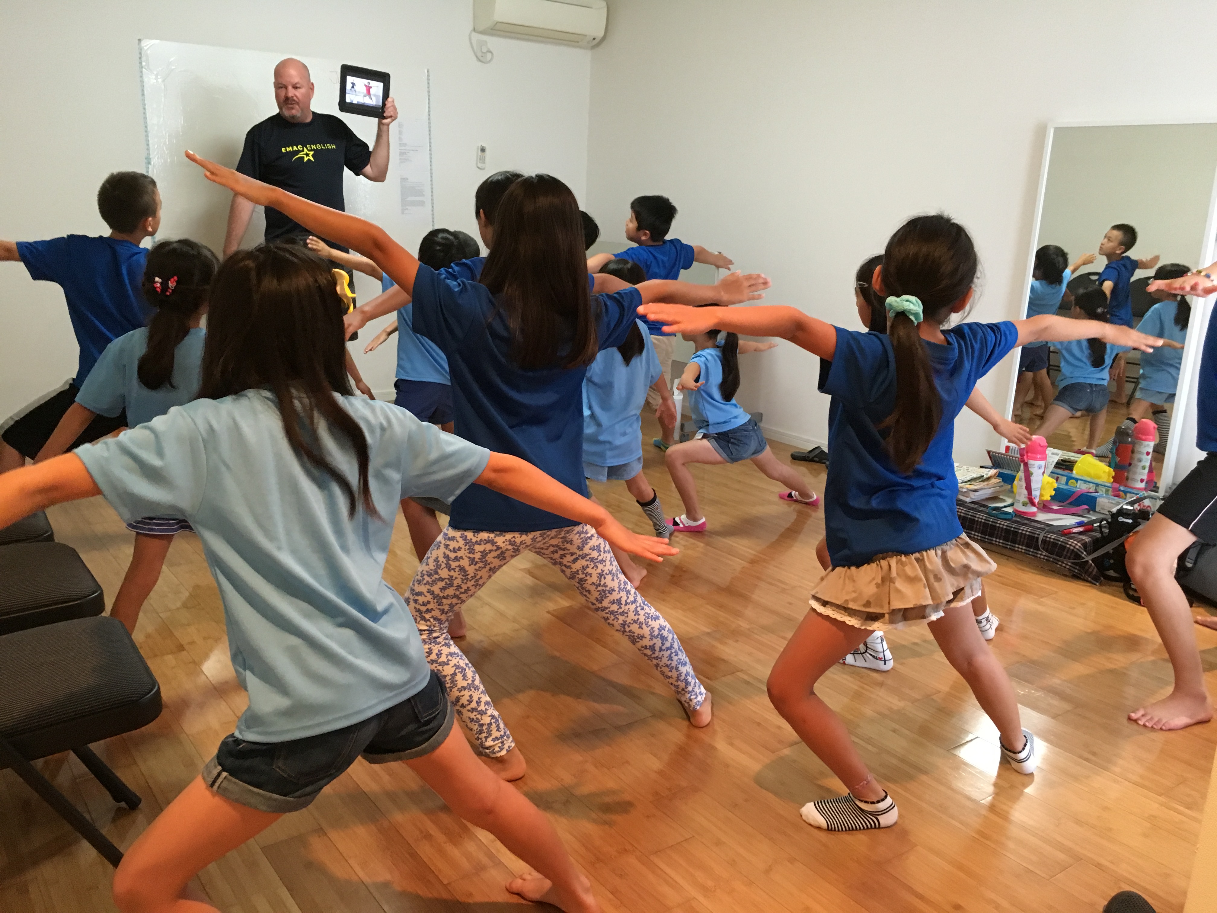 リズムにあわせて発音を真似ることから始めましょう。母国語と同様に英語の音を聞く力が身につけられ、さらに様々な音(英語)で自己表現できることに楽しみを覚えていきます。